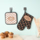 Stay safe in the kitchen for your baking and cooking this holiday season with on an oven mitt and pot holder featuring a Christmas themed gingerbread man, star, and candy cane cookie pattern with template text. Personalize the template text or edit using the design tool to select a font style, size, and colour you prefer.