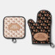Stay safe in the kitchen for your baking and cooking this holiday season with on an oven mitt and pot holder featuring a Christmas themed gingerbread man, star, and candy cane cookie pattern with template text. Personalize the template text or edit using the design tool to select a font style, size, and colour you prefer.