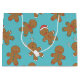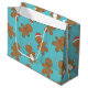 Gingerbread Men Blue Large Gift Bag. A fun and festive gift bag for your holiday gifts for him or even a Christmas time baby shower.