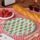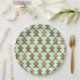 Festively decorated gingerbread men create a sweet pattern for a Christmas party. Shown here on a paper party plate with a changeable mint green background colour. You can choose your favourite colour and adjust the size of the pattern. These gingerbread men would be great for any holiday party or cookie swap!