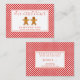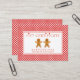 NewParkLane - Business gift certificate, featuring two cute gingerbread men, against a red gingham background. The texts are in a fun handwritten font in red with cute little hearts as dots on the letter i.