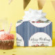 This custom holiday gift wrapping paper features a cute Christmas theme on a dark navy blue coloured background with white pin stripes. An image of a gingerbread man and lady are pictured standing in front of a cute little gingerbread house and pine trees. A sample "Merry Christmas" greeting is pictured above the family, followed by a sample family name. You can personalize the wrapping paper to include your own custom name or other text.
