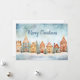 A charming little row of gingerbread houses sweetly brings a smile to one's face. This cheerful watercolor picture is vintage in origin. The snowy winter scene includes "Merry Christmas" in coordinating dark blue script that you can edit. The back of this flat card has an additional optional paragraph plus "from" names. Be sure to edit the "from" names on the front and back and also the date. If you do not want any of this text, including what is on the back, just delete it.