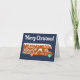 Both the message on the front and the message on the inside of this card can be customized with your own text. This Christmas card features an illustration of a gingerbread RV. This festive cookie camper is decorated with white icing and green and red candy. The graphic is set against a navy blue background.