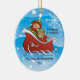 Twin's First Christmas Ornament features the cutest little pair of gingerbread twins in a sleigh set on a snowflake background! Personalize with your baby information and date and you're all set to go! Wonderful dated keepsake gift for your baby's 1st christmas.