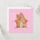 A traditional Christmas scene of a delightful Gingerbread house against a cheerful pink background. Traditional with a modern twist to share in the season's festivities. Appropriate for all ages and genders.