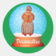 Gingerbread woman cookie snow globe green classic round sticker