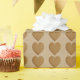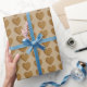 This wrapping paper features a gingerbread cookie design. The design has gingerbread heart shaped cookies on a brown background.