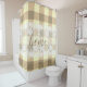 Pretty accent farmhouse style shower curtain with taupe and beige plaid gingham chequered pattern with white lace and home hand lettered script. ++++++++++ Can be a cute decor for your rustic country home or an inspired housewarming, Thanksgiving, or Christmas gift for someone in your life.