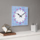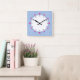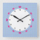gingham check blue and white with hearts clock is perfect for a country home. This clock is based on traditional interior design found in homes all across America. This stylish and cute background will add a traditional touch to any room. . Brighten up your day with this artistic blue and white geometrical clock for a great art timepiece. Available in medium or large round clock or square clock.