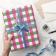 Gingham Check Pattern Hot Pink and Green Wrapping Paper
