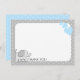 Baby elephant baby flat card thank you with a grey gingham check pattern and baby blue hearts. Change background colour to change base pattern colour if preferred.