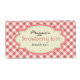 These labels feature a pink gingham patter, with a fully customizable front.
