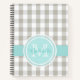 Pretty grey and white gingham complimented by a beautiful soft blue banner for you to add your monogram and name.