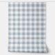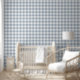 Gingham Pattern Coastal Checkered White Muted Blue Wallpaper