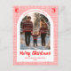 Gingham Pink Red Christmas Custom Arch 3 Photo Holiday Postcard