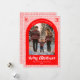 Gingham Pink Red Christmas Custom Arch 5 Photo Holiday Card