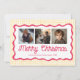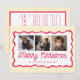 Gingham Wavy Pink Yellow Christmas Custom 3 Photo Holiday Card