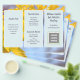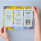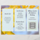 Yellow gingko leaves business brochure to customize on both sides and fold into thirds. Each side of this 8x11 inch size paper has three light blue sections with text templates. Also add a logo, QR code, and / or photo in the spaces provided. If you don’t want to use one or more of the image holders, remove it by going to the “edit in design tool” which can be found by scrolling to the bottom of the personalize area. In the design area choose the image by clicking on it, then hit the “trash can” symbol for that image.