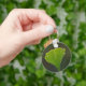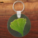 Key ring with close up photo of green ginkgo biloba leaf