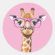 Girafe avec lunettes roses sur l'arrière - plan rose clair. C'est un autocollant pour les amateurs de girafe. conception de l'IA.