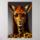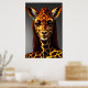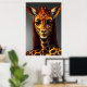 Portrait d'une girafe aux cheveux bruns longs, à la peau et aux oreilles de girafe. C'est un art généré par l'IA.