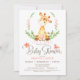 It's a girl! Great for jungle, zoo animals, or safari themed baby showers. This baby shower invitation features giraffe with butterfly and flowers. Good spring baby shower invite. Back of invite features white heart pattern on pink background.