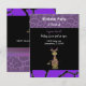 A cool design featuring a purple border with a giraffe fur pattern. A sweet faced giraffe with purple spots. Customize with all of your birthday party information as desired.