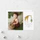 Illustration of a giraffe topping a potted Christmas tree with a star. Personalize with your own photo, name, and year.