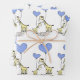 Giraffe Family With Blue Heart Balloons Wrapping Paper Sheet