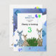 Une invitation à l'anniversaire d'un animal de la jungle mignonne. Doté de trois girafes de dessins animés dans les tons bleu et brun caramel. Une bordure bleue amusante l'accentue. Customisez avec toutes les informations de votre parti selon vos besoins.