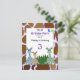 Une invitation à l'anniversaire d'un animal de la jungle mignonne. Doté de trois girafes de dessins animés en bleu, brun caramel et vert. Customisez avec toutes les informations de votre parti selon vos besoins.