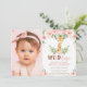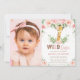 Giraffe Jungle Blush Floral 1st Birthday Photo Invitation