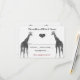 This charming wedding response card features two giraffes in love. Envelopes are included. Reply date is shown in red, but you can change it to any colour.