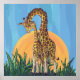 Giraffe Mama and Baby children’s art created by Imagine That! Design on electronics, accessories, and gifts is a whimsical scene of a mom and baby giraffe standing against a setting sun and a textured blue sky snuggled up together with the mama’s neck curled over so her and her baby can touch cheeks in a loving pose. Giraffe lovers of all ages will love getting this cute giraffe family painting as a gift.