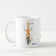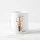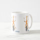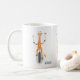 Cute mug for kids featuring a cartoon giraffe riding on a unicycle and spinning plates . Personalize it with the child's name .