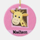 Giraffe on Pink & White Stripes Ceramic Ornament