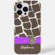 Trendy Brown Giraffe Animal Print Pattern Pinkish Purple Plum Ribbon and Faux Rhinestone iPhone Cases