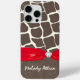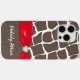 Personalized iPhone plus case with giraffe pattern and faux ruby red ribbon and faux diamond