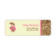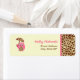 Address labels featuring an illustration of a giraffe print and pink owl at left. Giraffe is holding an umbrella. Giraffe print border with pink trim at right. Personalize with your name and address at centre. Look for matching stationery and more at Jill's Paperie.