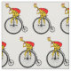 A funny cartoon of a giraffe, riding a bike while dressed and Santa Claus and carrying a large sack of Christmas gifts. If you would like any help customising this design please contact me, there is an ask this designer button, just below this text. The cute, funny giraffe is riding a vintage, penny farthing bicycle.