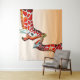 This tapestry has a giraffe and baby giraffe pictured on it.