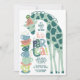 Set against a gender-neutral backdrop of bright white, mint green, lime green, teal, and salmon, and adorned with a delightful illustration, the invitation features a charming giraffe donning a party hat, ready to join in the festivities. Beside the giraffe, a stack of whimsical tea cups adds a touch of magic to the scene, inviting young minds to a tea party like no other.