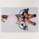 GIRAFFE WEARING GLASSES BLOWING A PINK BUBBLEGUM JIGSAW PUZZLE