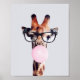 GIRAFFE WEARING GLASSES BLOWING A PINK BUBBLEGUM POSTER