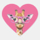 Giraffe with Pink Glasses Pink Background Heart Sticker