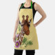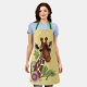 Portrait of a cute giraffe against a yellow backdrop with pink flowers.