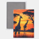 The silhouettes of two giraffes at a watering hole, with baobab trees and the setting sun behind them makes a beautiful and colourful magnet. Perfect for anyone who loves wildlife, nature and the outdoors.