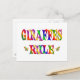 A giraffe lover can show their love for giraffes with this colourful design saying - Giraffes Rule. Makes a great gift.