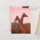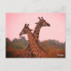Giraffes standing in mopani trees with pink sky postcard